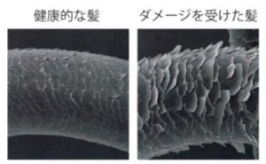 傷んだ髪というのは髪の毛の表面のキューティクルが剥がれ、髪の中の栄養が流れ出し穴が開いてしまい、